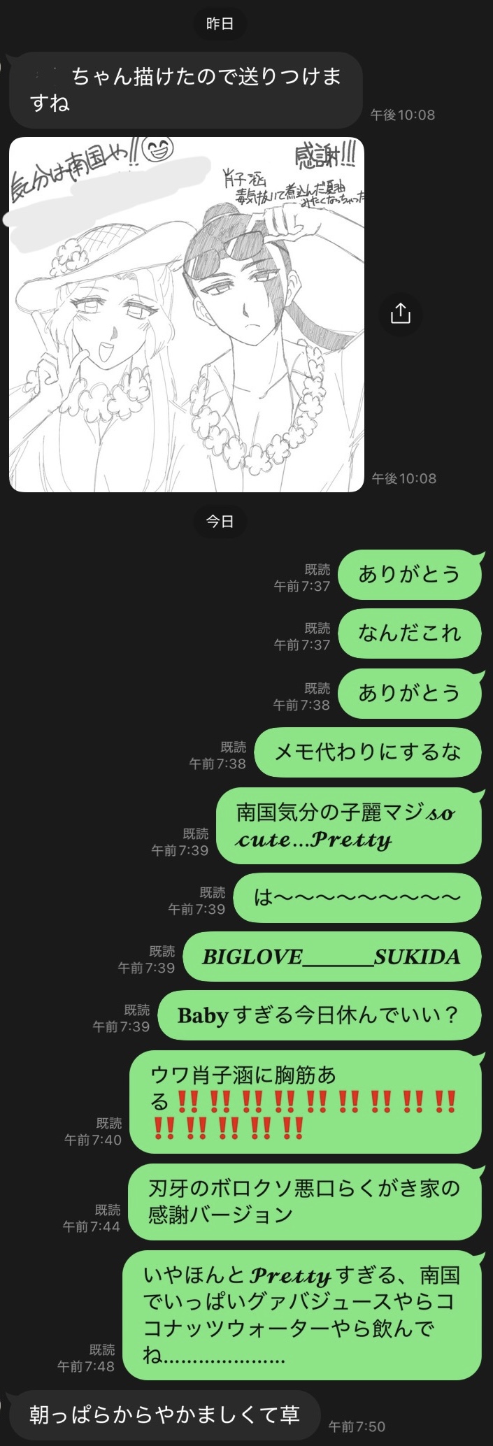 当時の私と友人のLINE↓(私がほぼほぼ狂っとる)