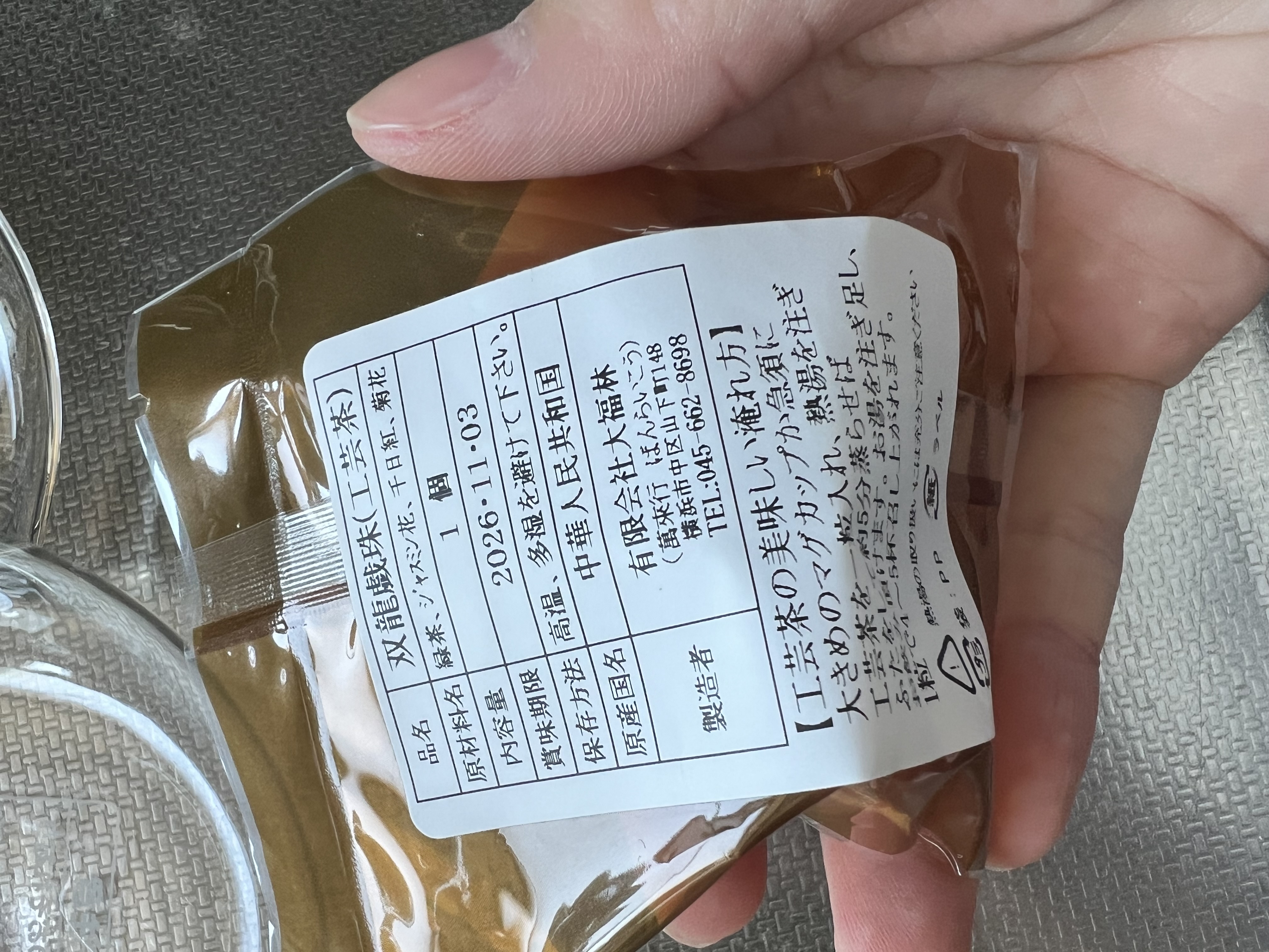 『双龍戯珠』というなんともかっこいい名前ですね!ちなみに中身は『緑茶』、『ジャスミン』、『千日紅』、『菊花』の4つです!
