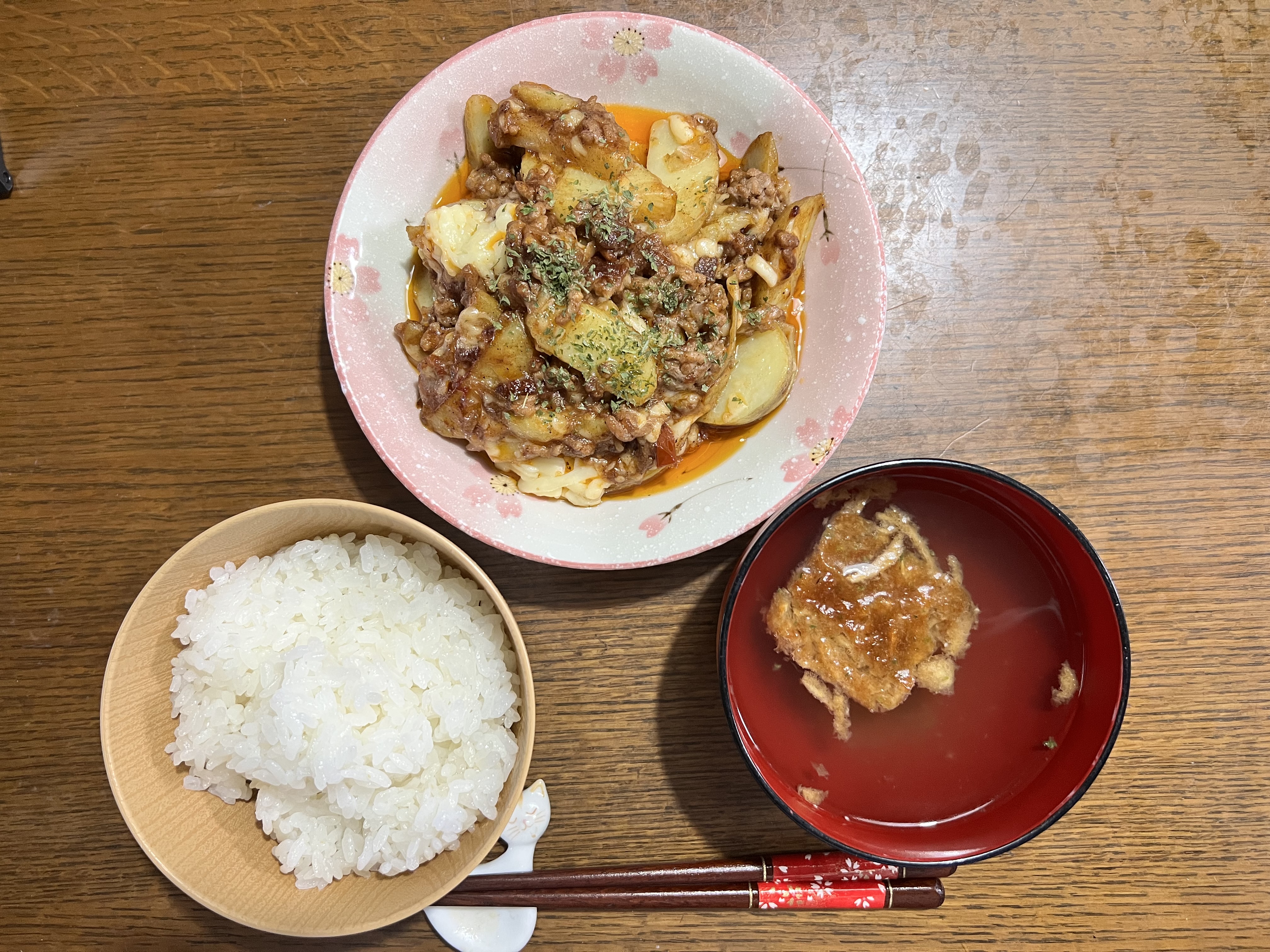 ひき肉から大量の脂が出るのは産地のせいなのか……?ってぐらいめっちゃ出てきたしキッチンペーパーで吸わせても吸わせても出てくるからもう諦めちゃった。できたのはめっちゃくどい(濃い)肉味噌炒めだったので父に注意LINE送ったら「オンザライスでいただきました!」て返ってきてわろてた
