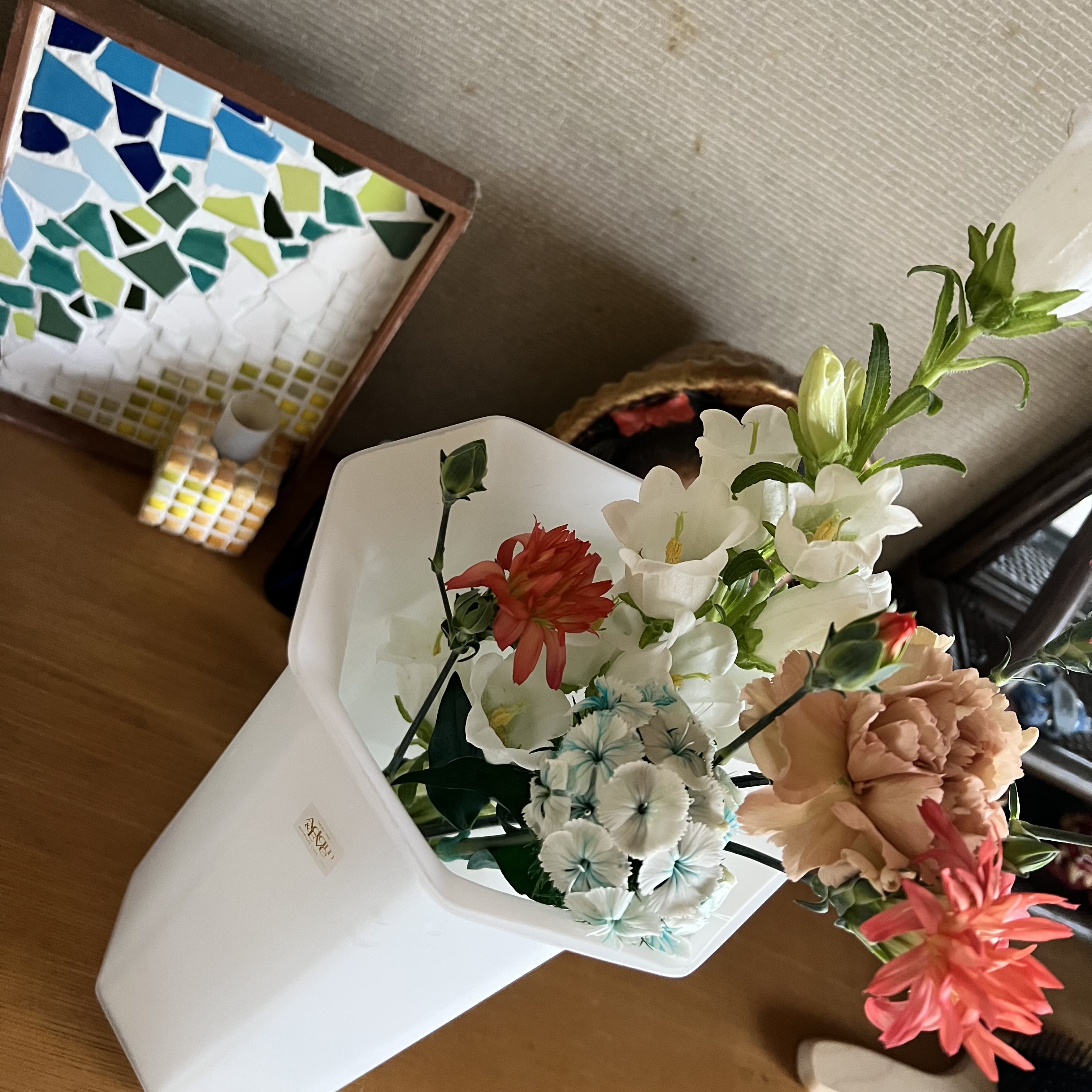 画像は持っていった花です。あんまり束を多くしても入らんし、少なすぎてもつまらんのでちょこちょこいい感じの本数で済ませました。立ち寄った花屋に仏花はなかったです。