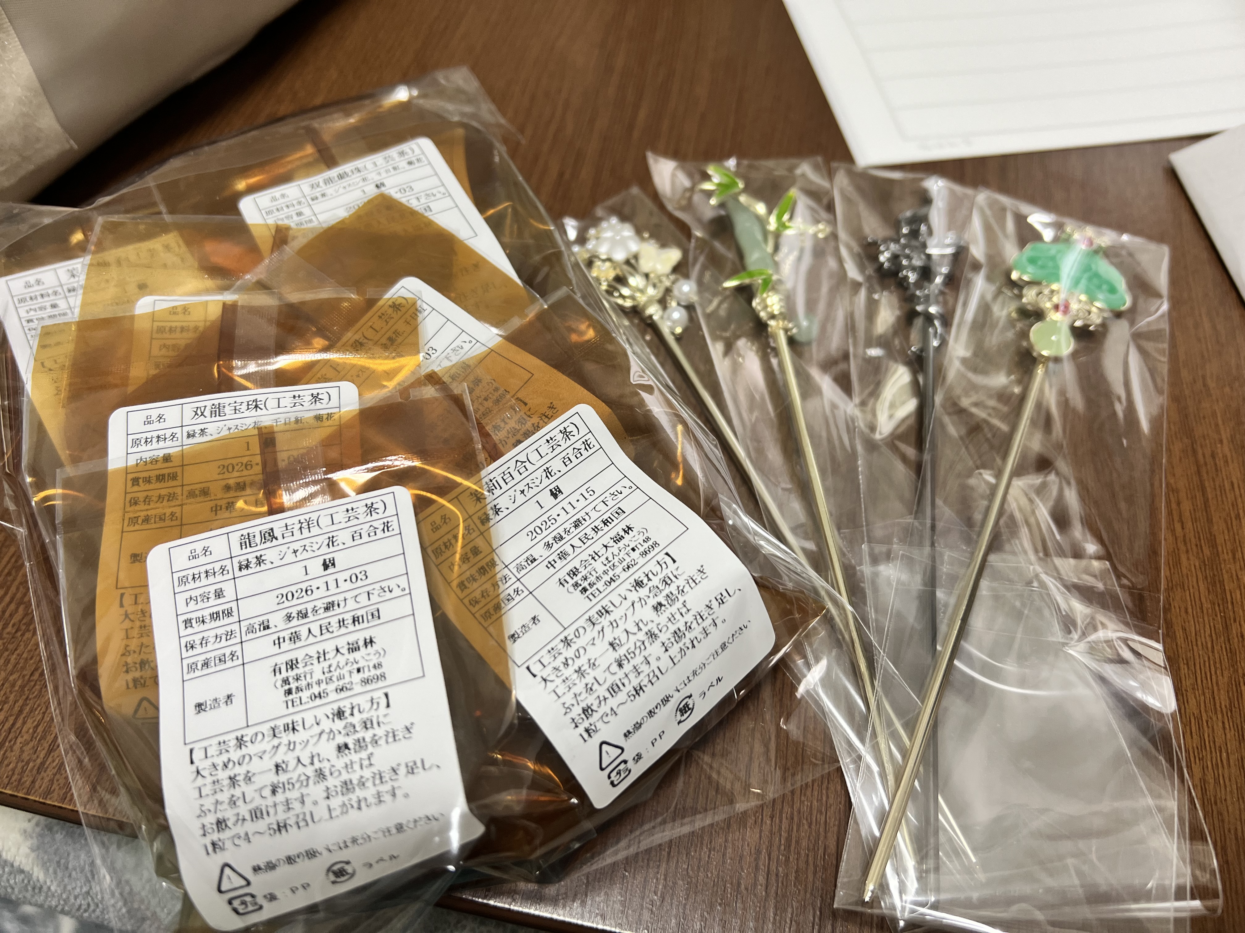 工芸茶は前の上司が中国に行ったお土産にくれて以降ずっと求めてました!通販とかにもあるけど1個だけってのが中々なく……お試しとして買いたいだけなので……こちらは簪が売ってたところにもあったし1個売りもあったので全種類買いました!お茶淹れる時楽しみや🥰